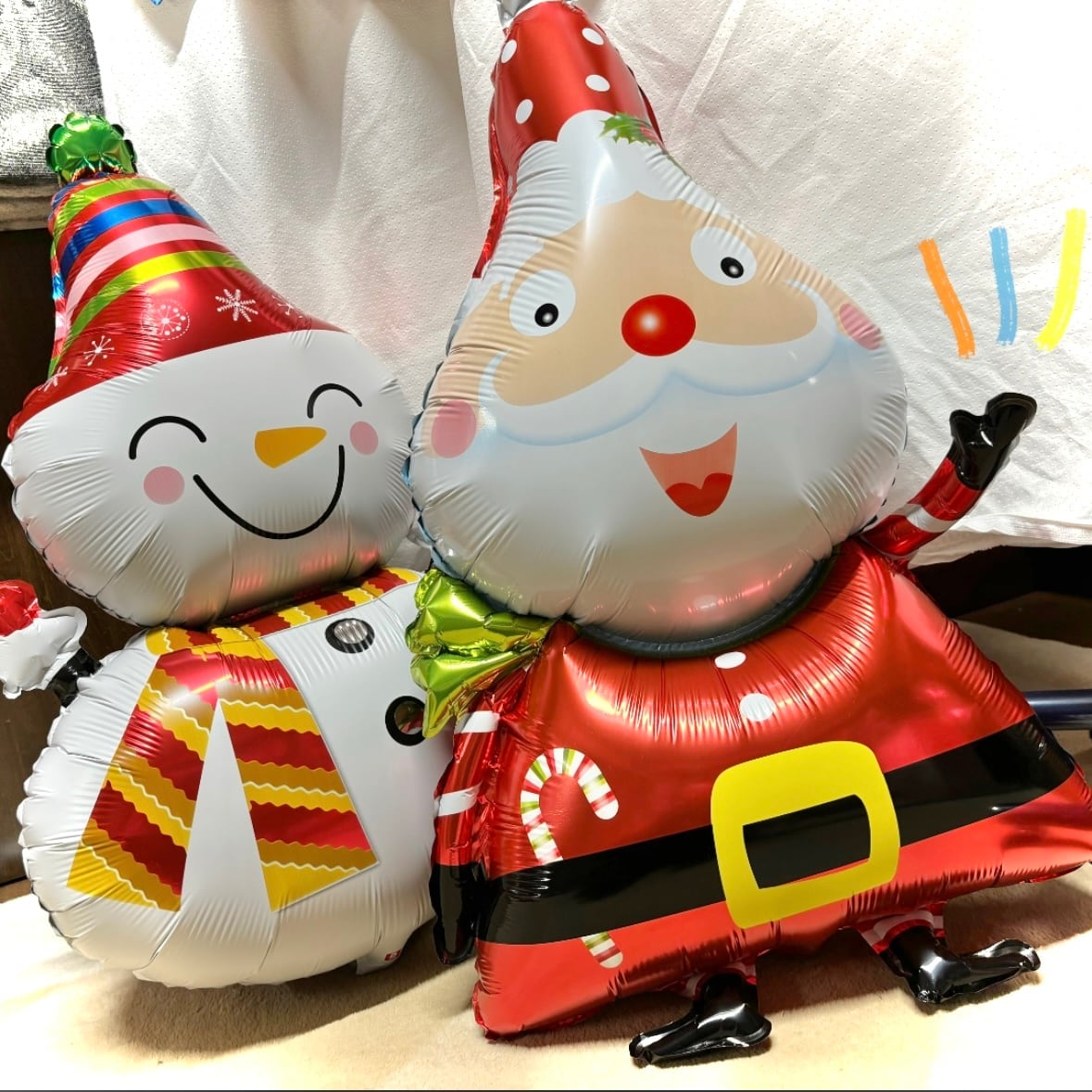 ポップで可愛いいアメリカンサンタとスノーマンのバルーン、ホリデーシーズンにぴったりの、2人セットです(๑˃̵ᴗ˂̵)